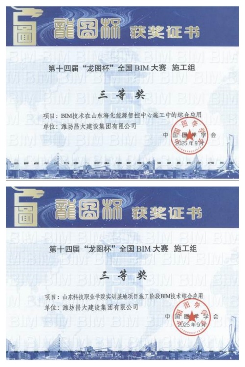 二則是,由中國(guó)圖學(xué)學(xué)會(huì)舉辦的第十四屆“龍圖杯”全國(guó)BIM大賽公布了獲獎(jiǎng)結(jié)果。集團(tuán)公司申報(bào)的《BIM技術(shù)在山東?;茉粗强刂行氖┕ぶ械木C合應(yīng)用》、《山東科技職業(yè)學(xué)院實(shí)訓(xùn)基地項(xiàng)目施工階段BIM技術(shù)綜合應(yīng)用》均獲三等獎(jiǎng)。實(shí)現(xiàn)歷史新突破。